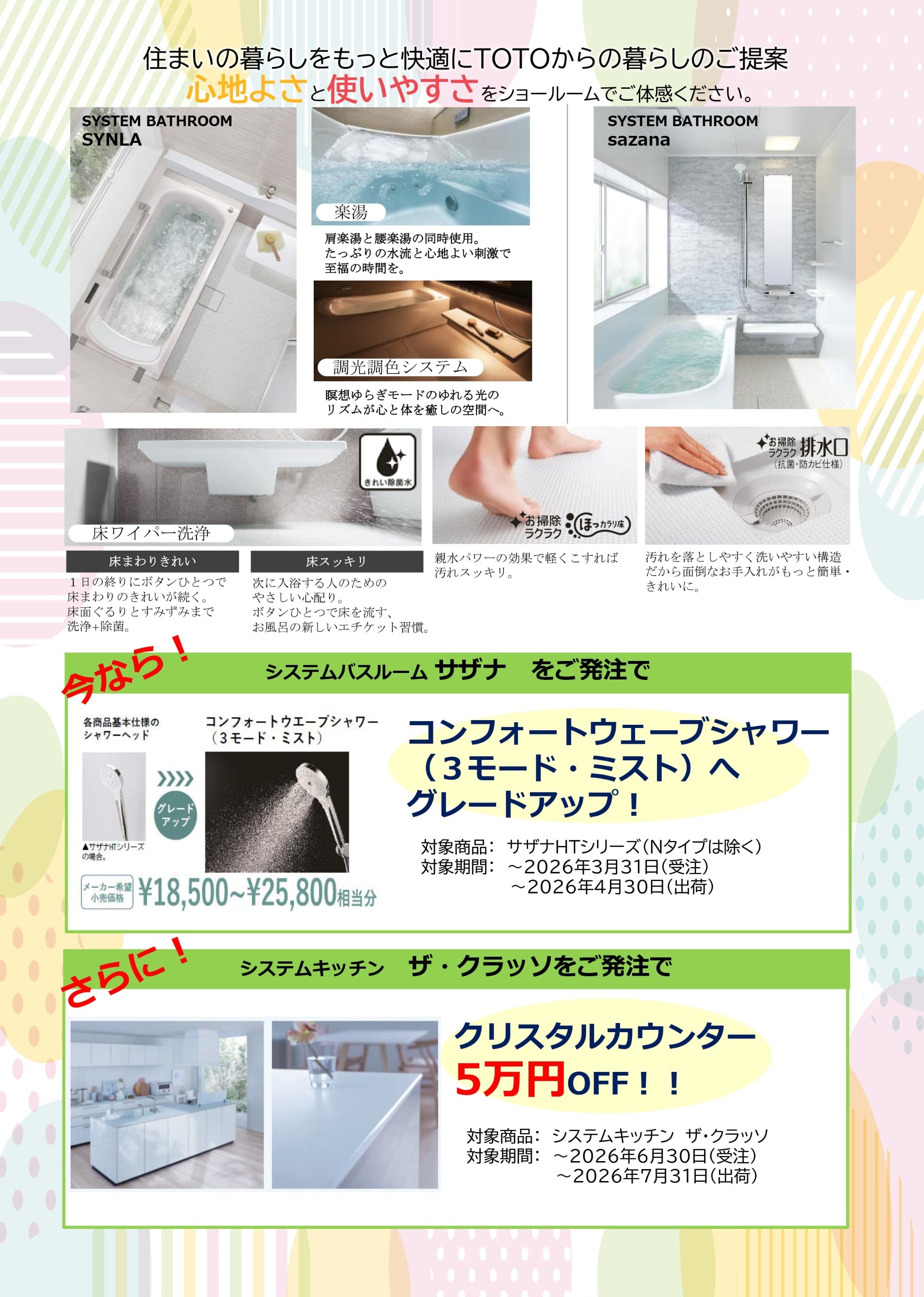 対象となる商品は、システムキッチン「ザ・クラッソ」、システムバスルーム「シンラ」です。